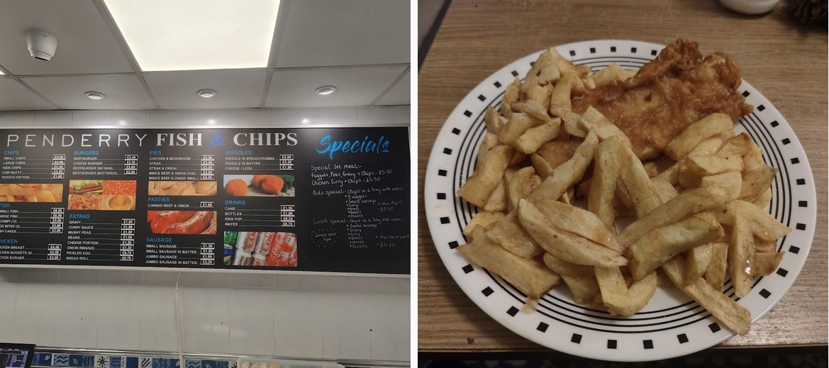 Penderry is open every day of the week, offering fish and chips for lunch and dinner.