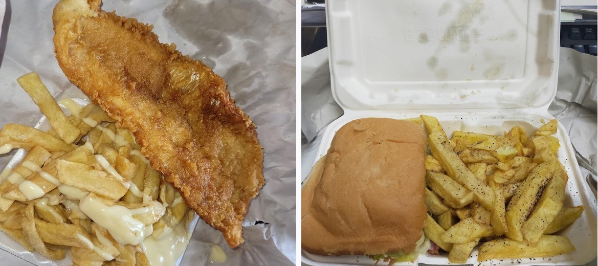 The food is amazing and freshly cooked chips nice friendly staff and cheap prices to the service is fast even if the placed has a dozen customers you get served quickly.
